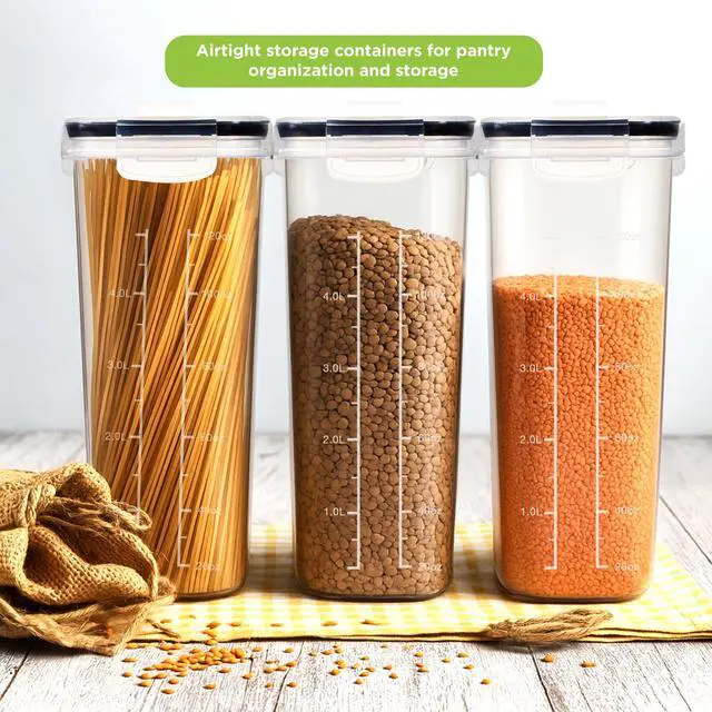 Dynamic Usage These containers are undoubtedly one of the must-have pantry organizers and storage solutions, as they can easily store cereal, flour, sugar, coffee, rice, grains, beans, nuts, snacks, pet food, baking supplies & more.