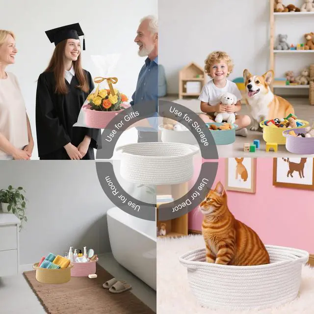 HZFTJOY Small Woven Basket Box with Gift Bag and Ribbons,Gift Baskets Shelf Storage,Rope Woven Cute Bin Box,Cat Dog Storage Basket,Decorative Storage Box with Handle