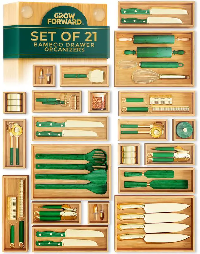 7 Piece - Drawer Storage Set Comes with 7 bamboo boxes for storage in the kitchen, bathroom, office and desk | 14 Piece - Drawer Storage Set Comes with 14 bamboo boxes for storage in the kitchen, bathroom, office and desk | 21 Piece - Drawer Storage Set Comes with 21 bamboo boxes for storage in the kitchen, bathroom, office and desk |
