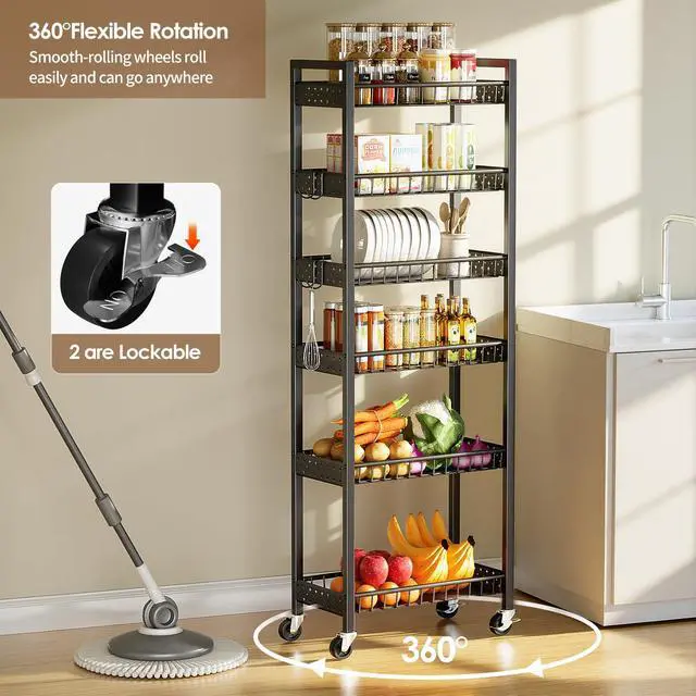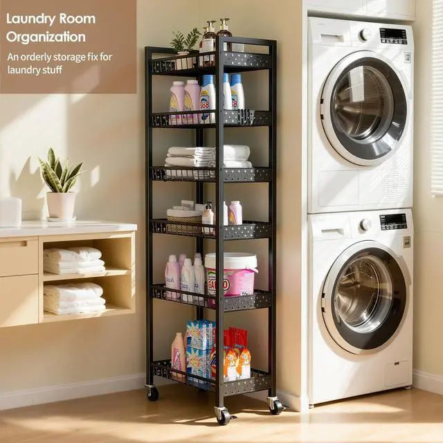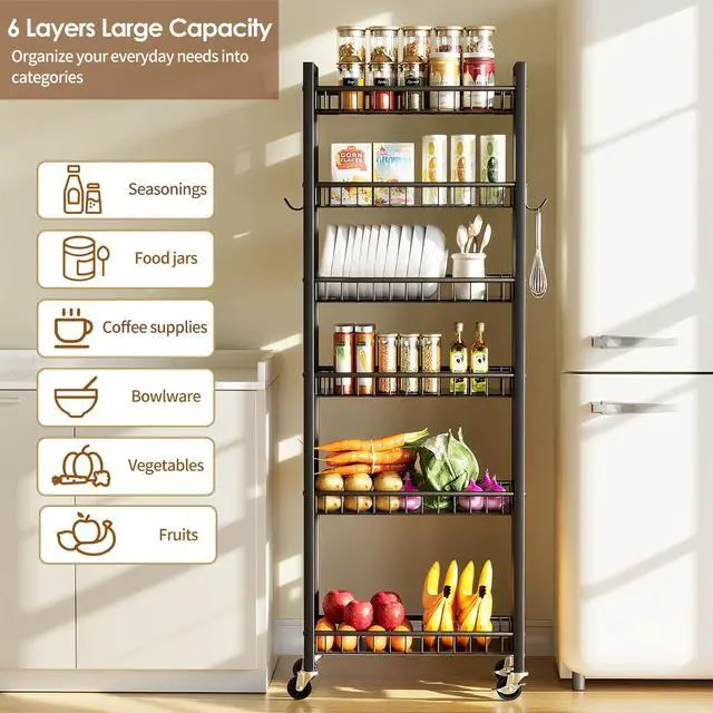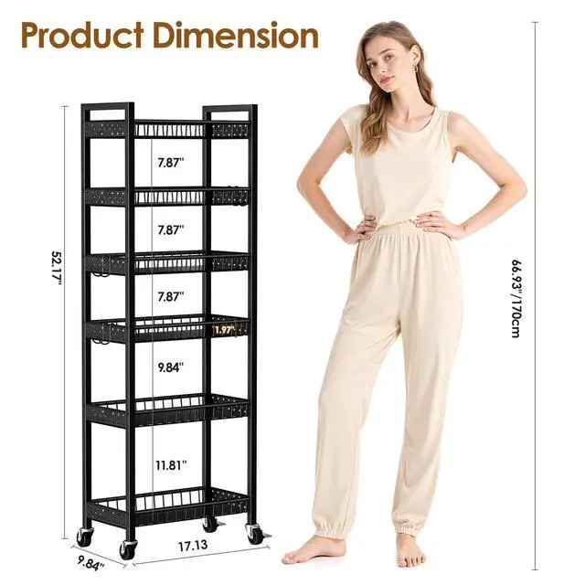 This narrow cart is made for small spaces. It fits perfectly into 9.84in/25cm wide narrow areas, easily turning tricky tiny spaces into practical storage spots!