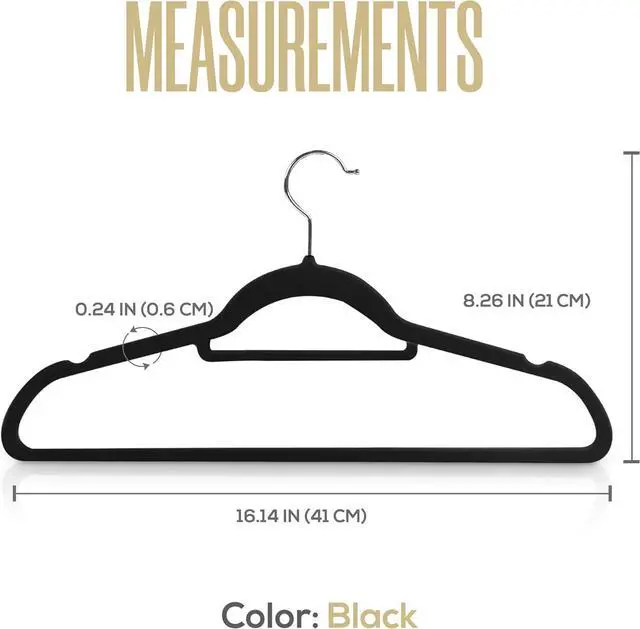 Velvet Clothes Hanger - Set of elegant velvet hangers, each measuring 16.14 x 0.24 x 8.26 inches. Made from sturdy ABS material that is strong enough to hold 10 pounds.