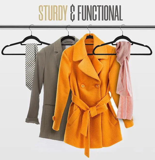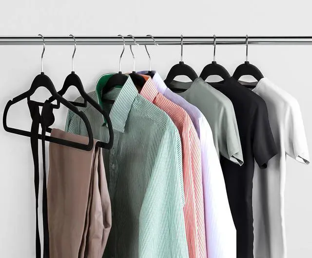 Non-Slip Surface - The velvet-coated surface of the hangers prevents your suits, pants and delicate blouses from falling and offers you wrinkle-free attire for your day-to-day fashion