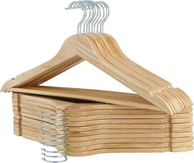 DURABLE WOOD: Crafted with premium quality grade natural wood, the pack of 20 smooth finished wood hangers. Strong in construction to hang heavy winter garments like coats, suits, and jackets.
