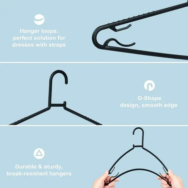 Durable & Long-Last: Constructed from high-value toughened plastic material-NEW PP material, which is NOT easy to snap and adds more durability. Byomostor clothes hangers will be your closet partner, hangers 20 pack or 50 pack, take your option, better meet your needs