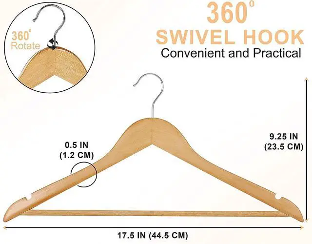 Wood Hangers with Perfectly shaped notches along the shoulders allow you to hang shirts, blouses and dresses effortlessly.