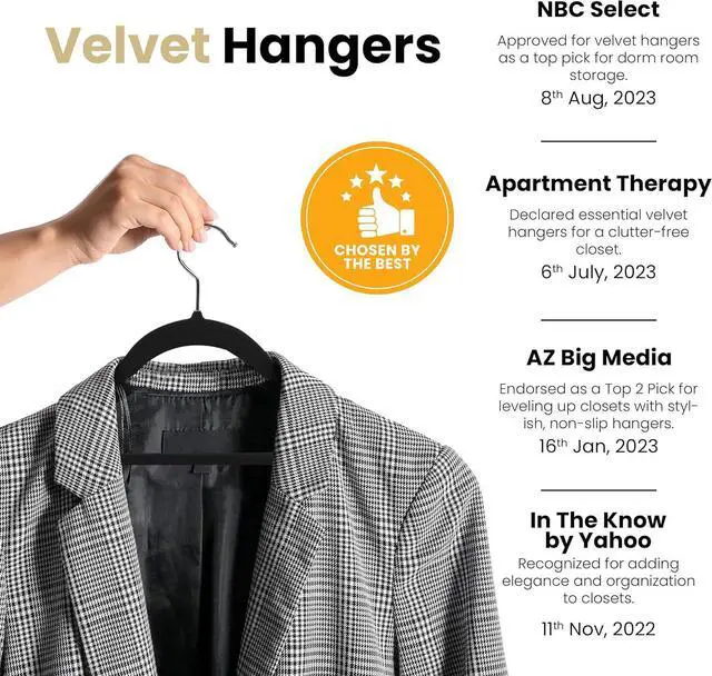 Non-Slip Surface - The velvet-coated surface of the hangers prevents your suits, pants and delicate blouses from falling and offers you wrinkle-free attire for your day-to-day fashion statement.