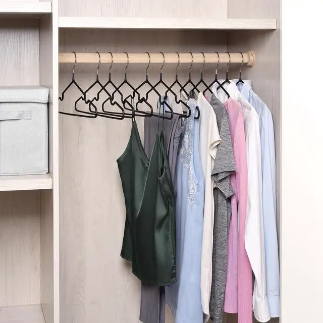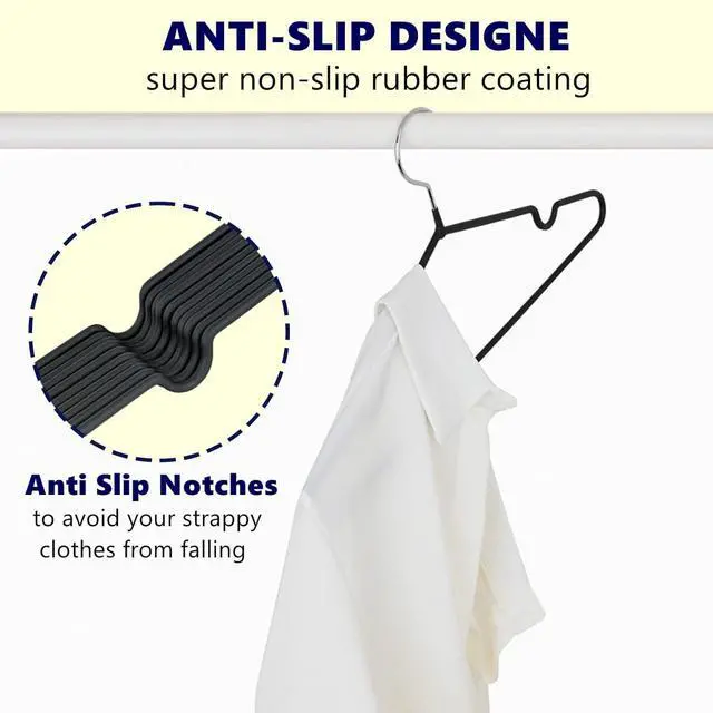 No Sticking & Anti-slipSpecial upgrade anti-slip PVC plastic coated with matte black, feels smoother and more comfortable, and has no stickiness but can prevent the clothes from failing off. The special shoulder groove design prevents clothing from falling, great for hanging camisoles and tanks.