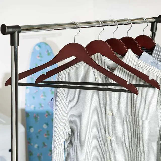 Sturdy wood construction built to hold all shapes and styles of jackets, coats, shirts and other garments