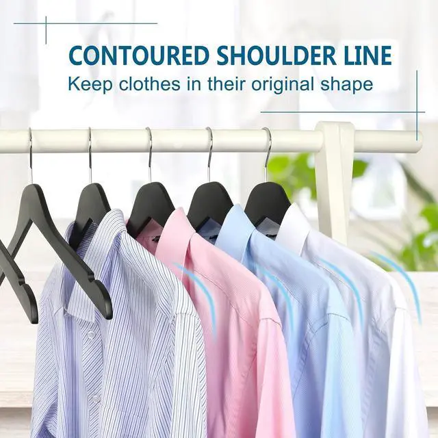 Ergonomic Design: The hanger has a unique flat head design and shoulder contours mimic human shoulders, keeping your clothes in nice shape and wrinkle free