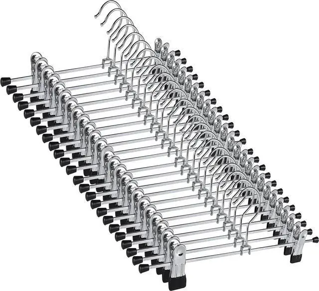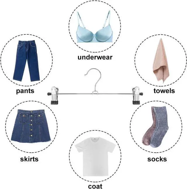 Movable clips hanger for pants: These pants hangers with clips are easy to use and instantly add clothes pant hangers decor to your warm closet. The skirt hangers with clips is adjustable as short hangers to hang adult kids baby pants.
