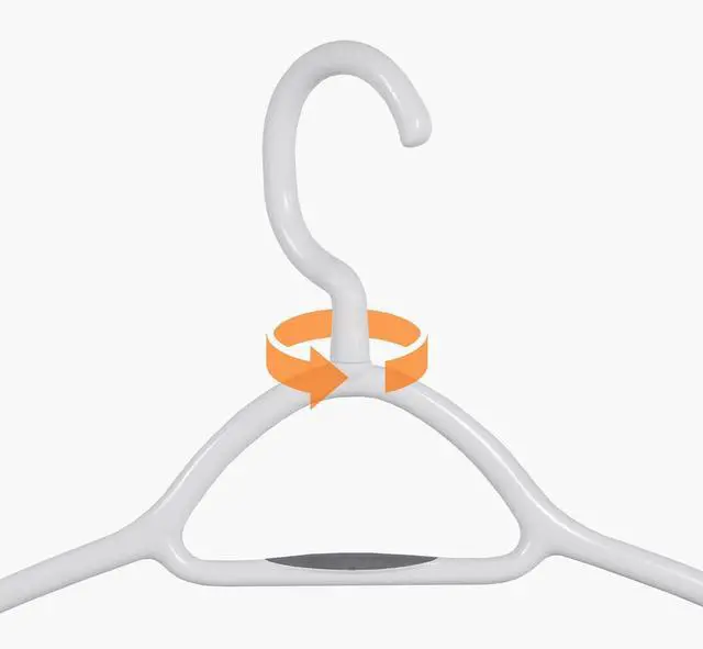 360 DEGREE SWIVEL NECK - An effective aid in maximizing closet space, these space saving hangers feature a rod hook that swivels 360 degrees to effortlessly hang and organize items on a closet rod, towel bar, or storage hook.