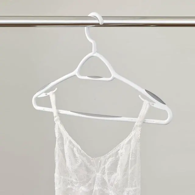 NON-SLIP DESIGN - Soft rubber-like grips on the accessory bar, pants bar and shoulders of the clothing hangers provide an anti-slip surface that holds all types of fabric securely in place, including ties, belts, silk scarves, lingerie and spaghetti straps.