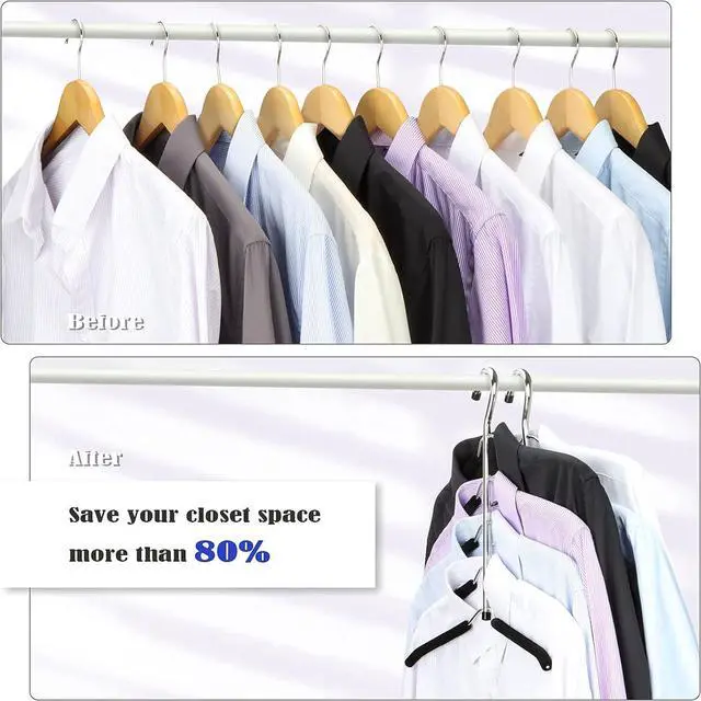 Easy Access and Retrieval: Featuring a multi-layer design, this shirt hanger ensures effortless access to your garments. Locate and grab your clothing quickly and efficiently, avoiding the frustration of a cluttered closeteven when you' re pressed for time.