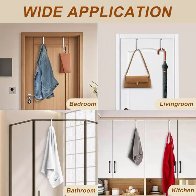 Any Room: Use these over door hooks in the bathroom bedroom dorm or closet. Great for hooks for hanging towels hats keys bags or organizers. Perfect bathroom door hooks and towel hooks for bathrooms that keep your space tidy and clutter-free. Ganchos Metálicos Resistentes para Puerta Fácil Instalación y