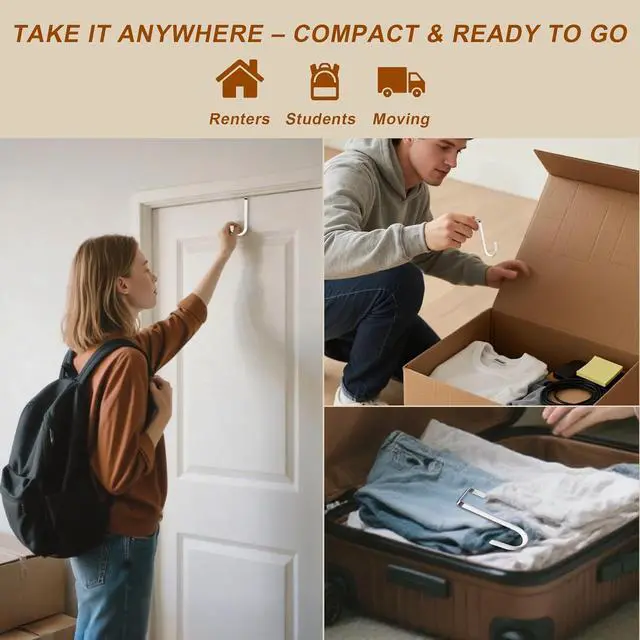 College Dorm Deals: Simply hang these door hanger hooks over your doorno screws or tools needed. They make a damage-free renter-friendly storage solution and are part of the must-have dorm room essentials for students and small spaces. Scratch-Free Rubber Coating Safe for