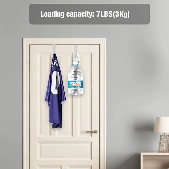 STURDY AND DURABLE: Our over the door hooks are made of high-quality metal and each door hook that hangs from the door is 4.5 inches tall and can hold up to 7 Lbs.