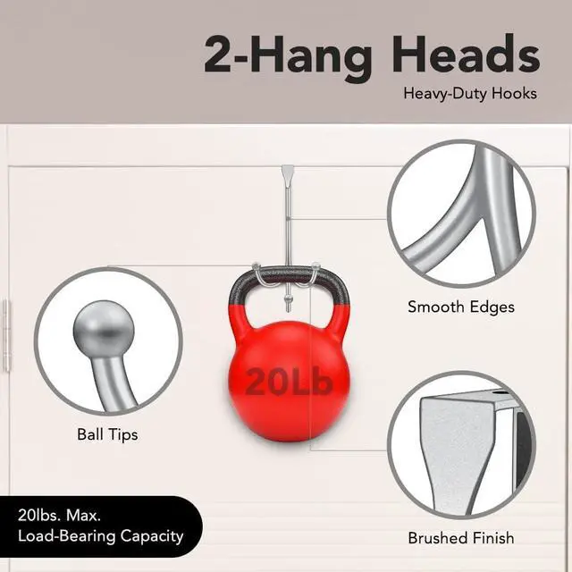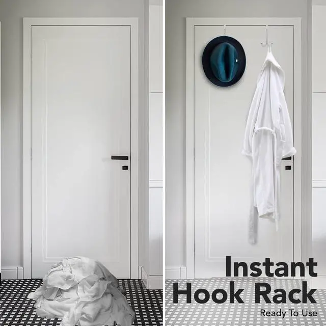 NO DRILL OVER THE DOOR RACK. This handy and instant hook rack is a quick and easy solution to hanging wreaths bags and other necessities without the need for drilling nailing or hammering. You can hang and transfer these bathroom towel hooks with convenience and flexibility! RUST AND MOISTURE RESISTANT. These multi-use and heavy-duty hooks have a polished finish that prevents moisture and water from accumulating rust and grime. You can now use our versatile shower towel hooks for bathroom doors or outdoor garage for a longer period. ELEGANT 2-HANG HEADS HOOK RACK.