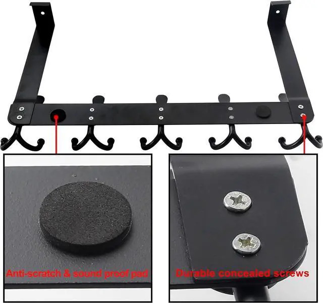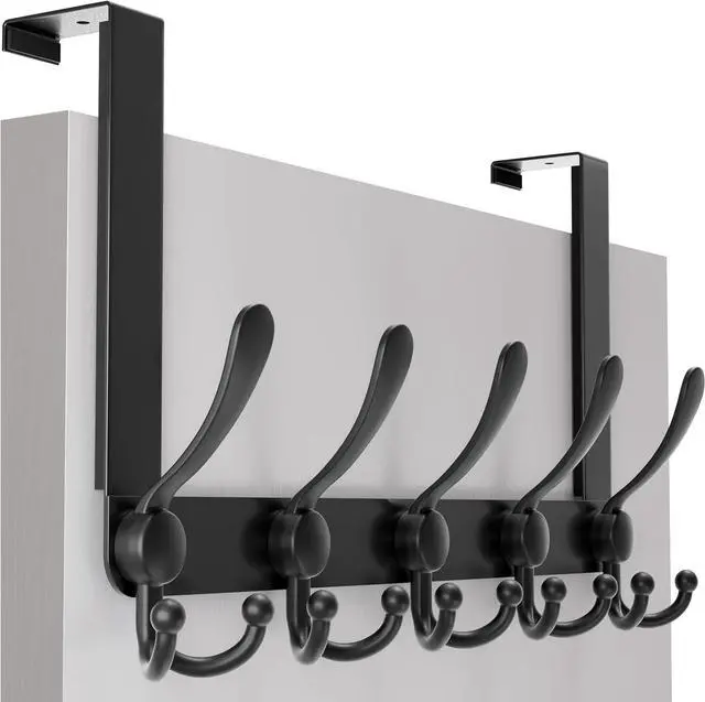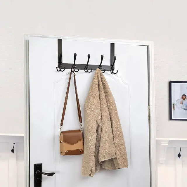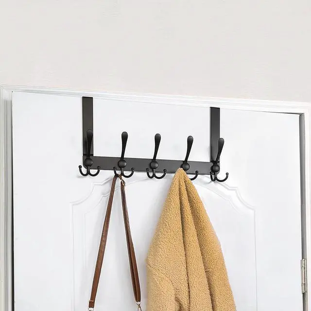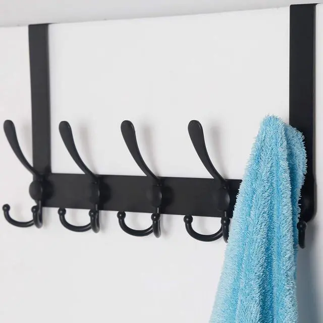 Keep Quiet A sponge pad is attached to the back of the door coat rack which can prevent the smooth surface of the door from being scratched. The hooks don't protrude too far holding the towels easily but not preventing the door from opening or closing. Multipurpose Door Hook RackHanging door hook for closet bathroom entryway bedroom; Useful door hanger for hanging clothes coats towels robes hats backpacks.