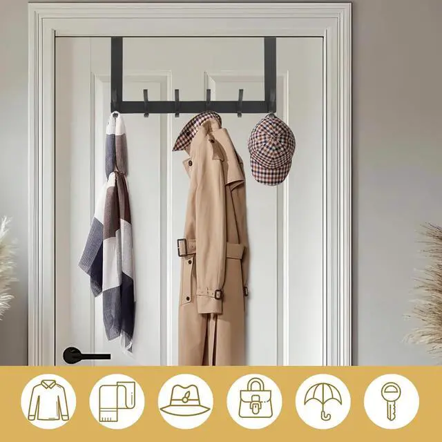 Space-Saving Door Hook: Sturdy door hanger adopts a double-layer design and is equipped with 12 hooks. It can make full use of the space behind the door and improve efficiency. The door hanger hook is used to hang clothes coats towels hats backpacks umbrellas etc. It is suitable for bathrooms bedrooms living rooms and kitchens.