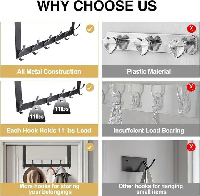Durable: The over the door hook is made of high-quality space aluminum durable high hardness rust-proof strong bearing capacity not easy to bend and break it can be used for a long time. Each hook can bear 22 pounds safe and reliable allowing you to easily hang heavy coats and other heavy accessories.