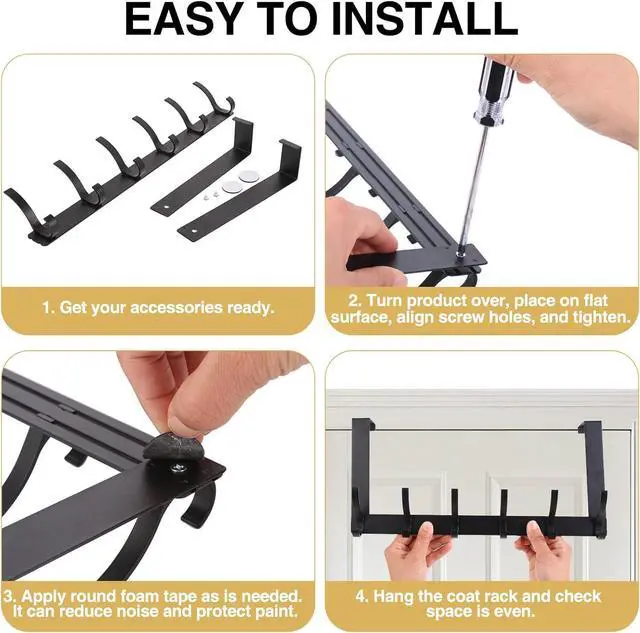 Easy to Install: Over the door towel rack. No drilling is required. Just insert two hanging brackets into this door hook and hang it on the door. 8cm hook distance larger storage space no squeezing and no stacking. 10cm reserved space effectively ensures that the hook will not hurt the wall and cause losses. It is suitable for 99% of doors.