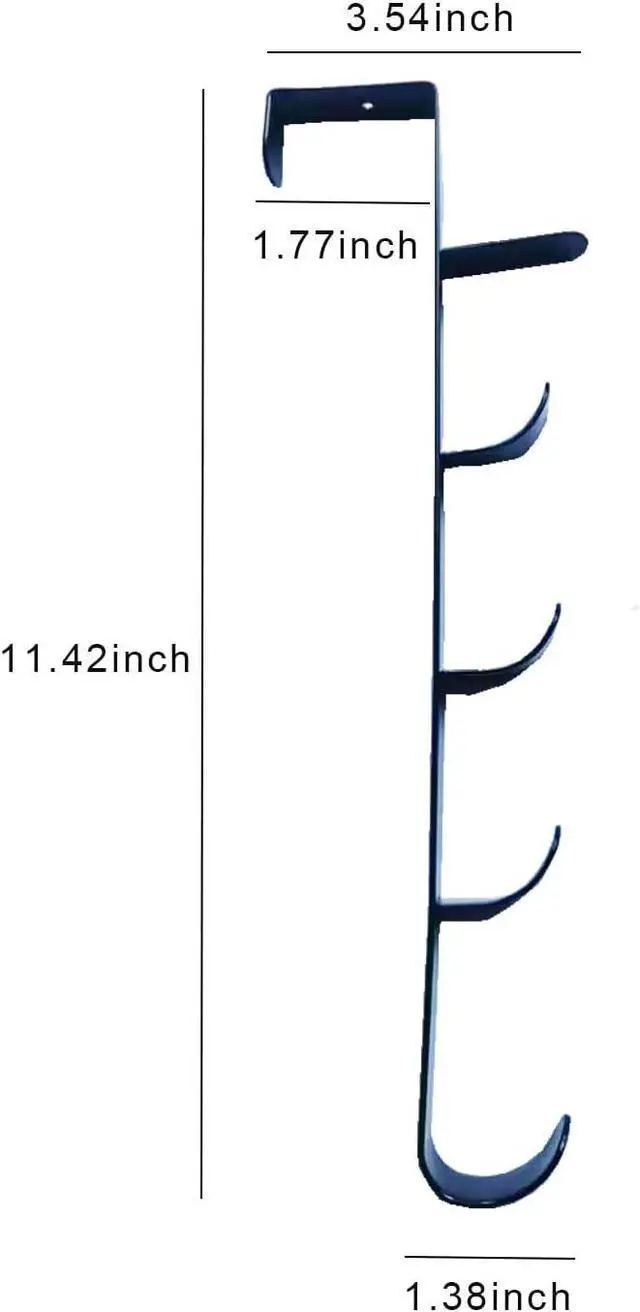 ? 5 Practical Hooks - The over the door hook hanger has 5 strong hooks which can be used for hanging coat hat handbag belts and other things you like. It makes your life more convenient.? Fit Most Doors - The length of the hat rack is 11.4 (29cm) the width is 0.63 ( 1.6 cm) the height is 1.8 ( 4.6 cm). It suits for the door from 1 to 1.6 thick and make sure that the space between the door and the frame is greater than 0.06 ( 0.15 cm) to make the door can be closed.
