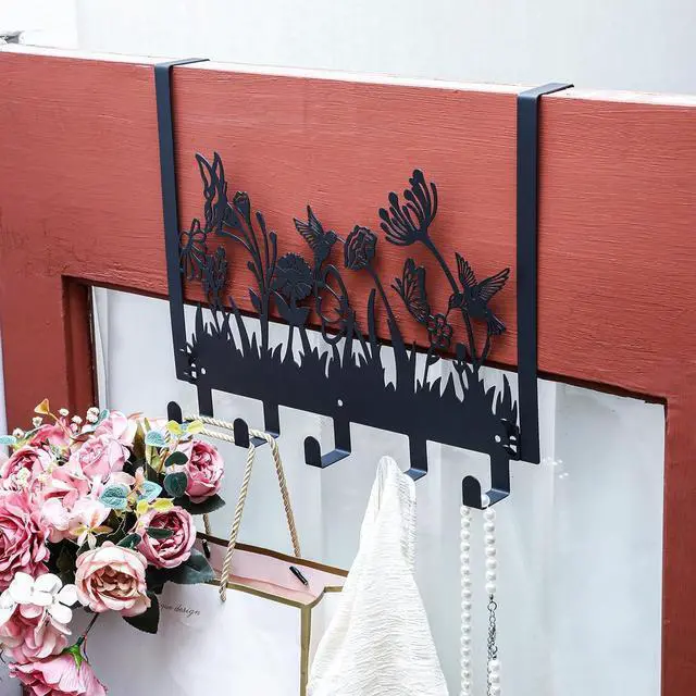 Metal Material: the hummingbird flower over the door hooks is made of quality metal the surface is electroplated to prevent rust it can bear a certain weight and it adopts a stylish and modern matte black finish which is ideal for hanging thick coats bags and other large itemsThoughtful