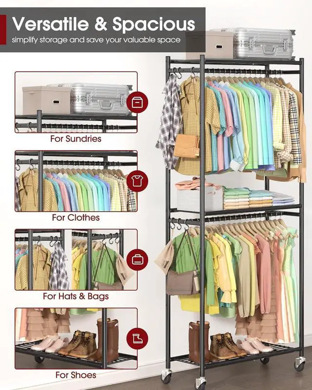 HASSLE-FREE INSTALLATION: This heavy-duty clothes rack offers hassle-free installation, complete with all necessary tools. A detailed instruction manual and step-by-step video guide make it easy to assemble independently, providing a smooth and straightforward setup process without assistance.