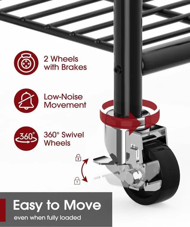EASY TO MOVE: Sakugi clothing rack for hanging clothes comes with universal wheels, making it easy to move even when fully loaded. Two of the wheels have brakes that keep the closet rack securely in place, preventing any accidental movement. This thoughtful design provides flexibility and safety, allowing you to reposition the rack easily.
