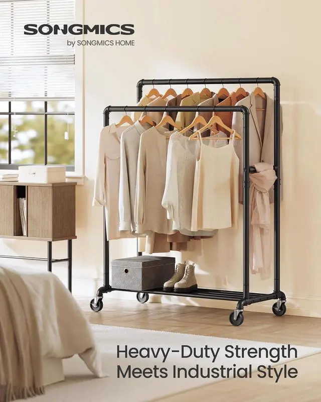 [Sturdy and Heavy-Duty] Premium 1 mm steel tubes and heavy-duty casters ensure a max load capacity of 198 lb and great stability. So you are welcome to hang your heavy coats on this clothes rack!