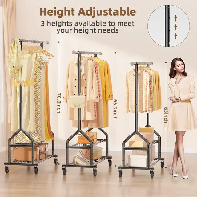 Extendable Hanging Rod & Height-Adjustable: You can adjust height of clothing rack to fit long dresses or short garments, ensuring optimal space usage. Extend or shorten rod length to fit tight spaces or expand storage when needed. Customizable for user convenience.