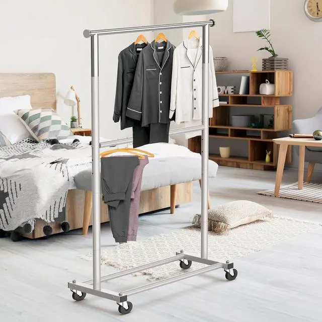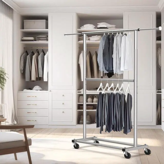 Smooth Mobility - Equipped with 2.5 " heavy-duty caster wheels, allowing for effortless movement. A portable closet solution that glides smoothly across floors.