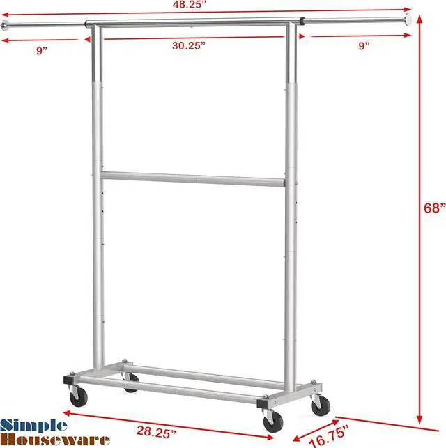 Extendable Horizontal Rods - The top rod extends from 30.25 " to 48.25 ", providing extra storage and versatile hanging options for various clothing sizes.