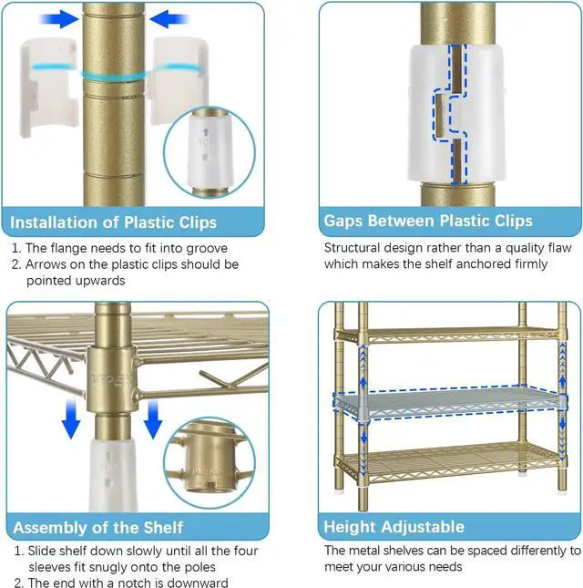 Easy to Assemble: Our wire garment rack is easy to assemble with clear instruction. Certain shelves must be installed in a particular order.
