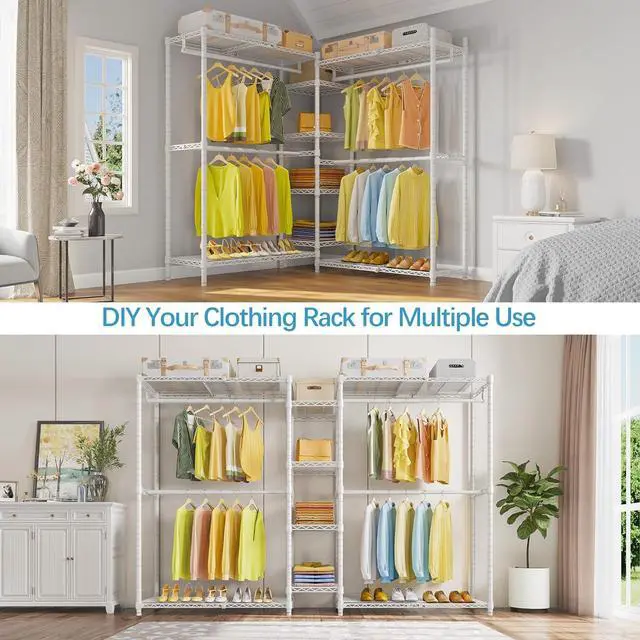 DIY Closet Installation: VIPEK X3 garment rack can be assembled in 2 shapes for different types of rooms. The horizontal assembly way for the reach-in and walk-in closet, and the L shape for the corner space
