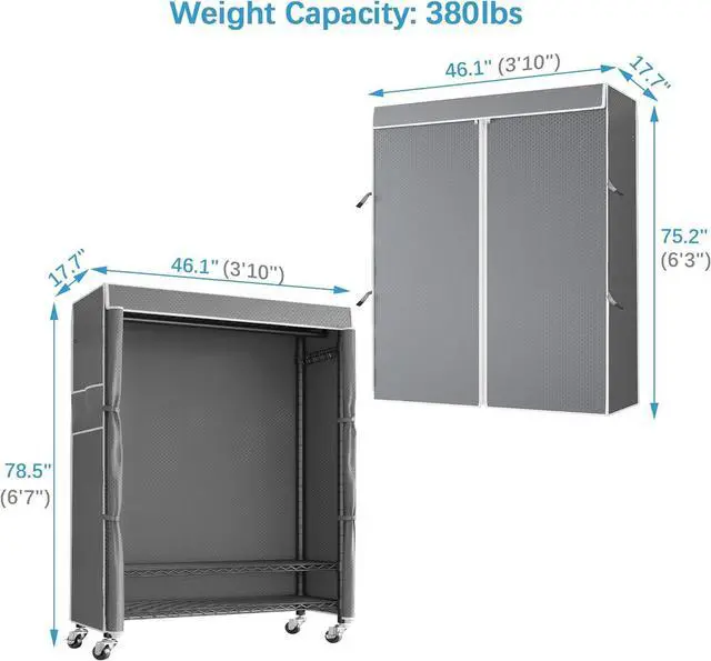 Zippered Polyester Fabric CoverCloset comes with upgraded polyester fabric cover, sturdy, wrinkle resistance, breathability keep garments dry. Easy to clean with damp cloth, and to keep your item away from dust.