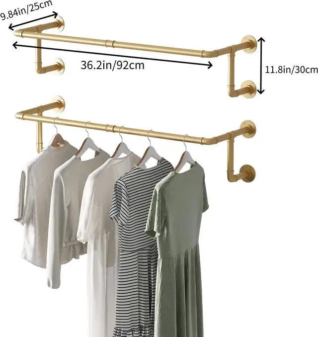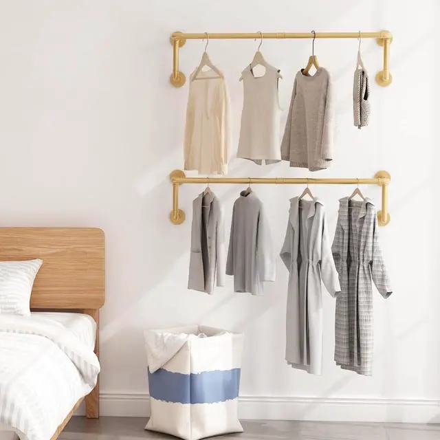 Durable: The wall mounted gold clothing rack is crafted from high-quality iron, ensuring a stable structure that can handle heavy loads without wobbling, making it an ideal choice for long-term use.