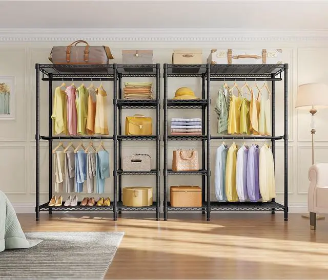 Diversified Usage ScenariosThe portable closet rack can be used at anywhere you need, like entry closet, bedroom, cloakroom, balcony, bathroom, hallway and more.