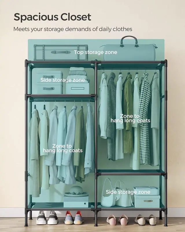 [Large Capacity] Sized at 17.7D x 65W x 74.8H, this clothes rack comes with various zones to meet your storage demands of daily clothes