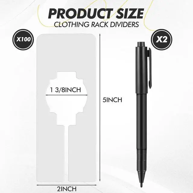 Package Inclusions: the package includes 100 pieces of rectangular size dividers and 2 marker pens; The black marker pen allows you to customize your size dividers by writing down necessary information like size, color, store, and new items