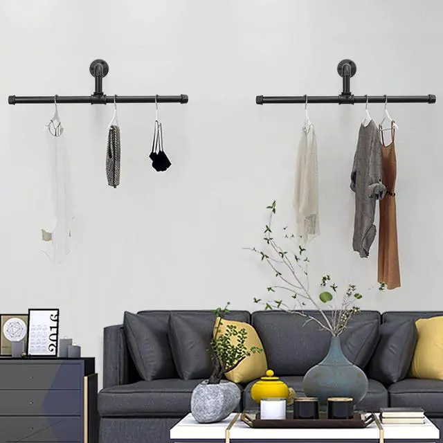 Robust Design: Transform any space into a stylish walk-in closet with our durable, wall-mounted clothes rack. Crafted from high-quality, rustic iron piping, it blends strength and longevity to enhance your home decor while maximizing storage