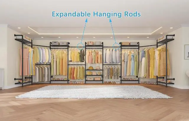 Industrial Pipe Style: Large walk in closet systems consist of retro vintage industrial pipe clothes rack with 6 closet shelves, 6 closet rods (include 4 expandable hanging rods) and its modern simple look. Our Timate all models are multi-type installation modular closet, you can perfectly DIY install it into I shape or L shape or combine more sets on you needs