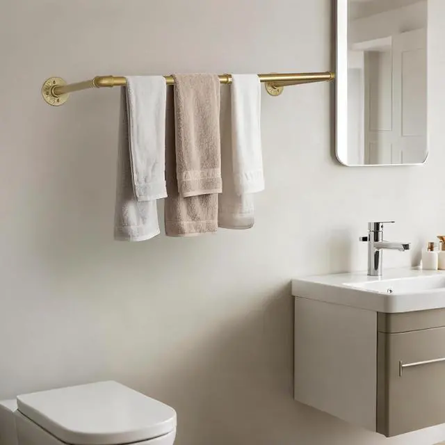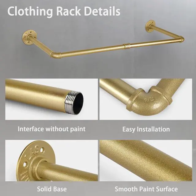 Very sturdy and durable, this garment rack is made of high quality iron pipes, smooth matte gold finishing. It has a weight capability of 44 lb (20kg), just make sure you screw the pipe tight and mount it to the wall properly.