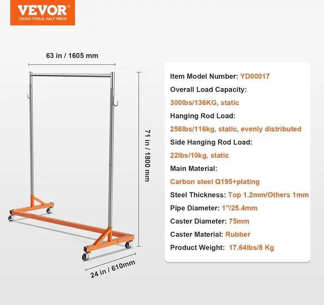 A High Enough Clothing Rack: The 70.9 " /180 cm Z base garment rack is high enough for hanging your long-style clothes. Owning this clothing rack, pick the clothes you want to wear at a glance.