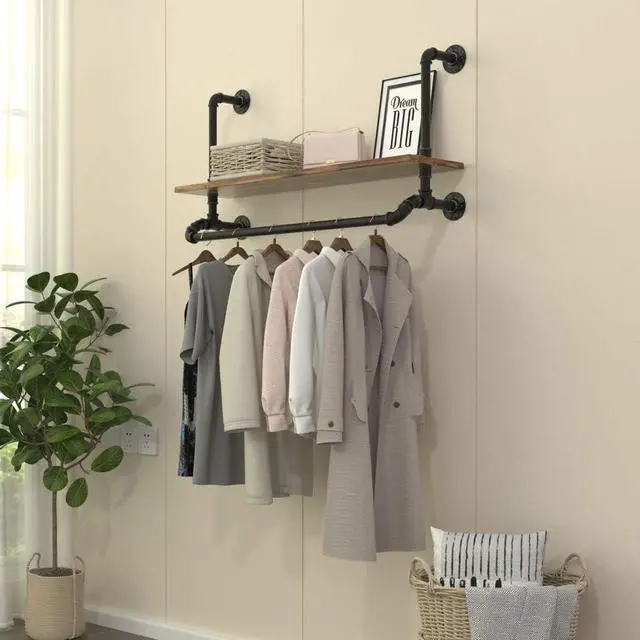 Product Construction: This clothes rack is crafted from vintage black strong rustic malleable iron pipes and solid wood planks, complete with cool industrial looking, extremely durable and long lasting; easy to match with different styles of room;