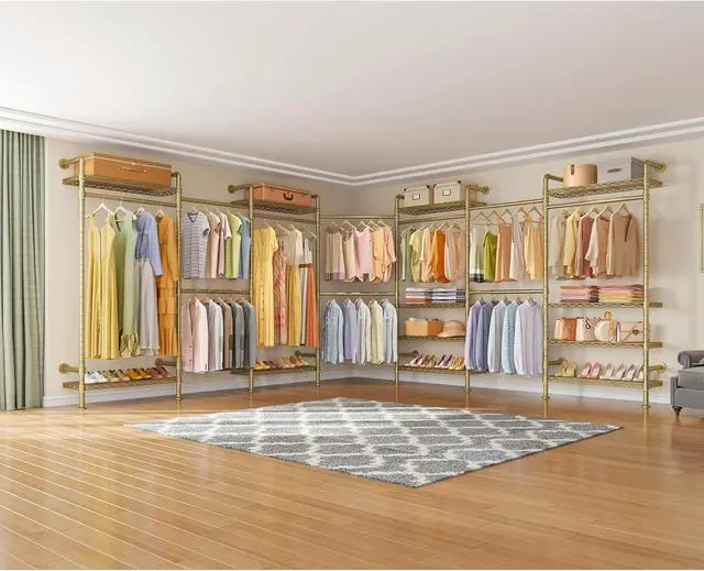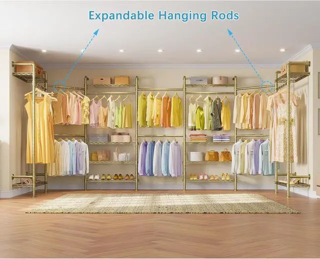 Distinctive Style -- Modular closet systems consist of retro vintage industrial pipe clothes rack with 12 shelves, 10 closet rods (include 4 expandable hanging rods) and its modern simple look. All models are multi-type installation modular, you can perfectly split it into 2 and more sets or combine more sets into a single set, depending on your need.