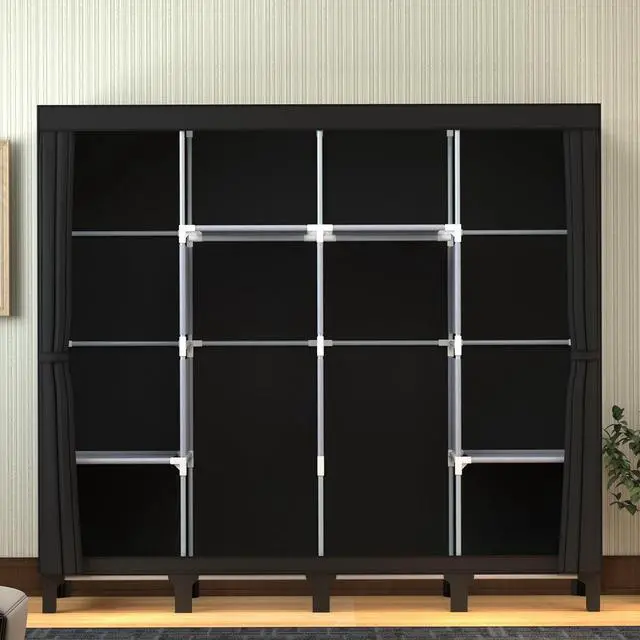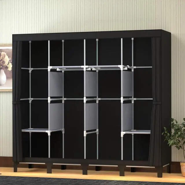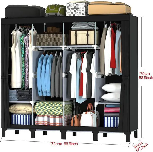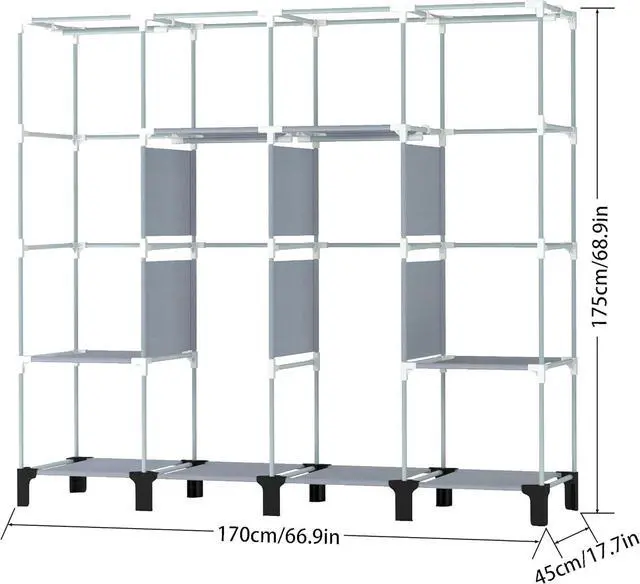Sturdy structure: This clothing hanging wardrobe is made of solid materials. It is made of thickened square plastic ferrule made of thickened non-woven fabric and raw rice PP material, which is full of toughness and not easy to crack. The diameter of the round tube is 0.52 inches. With advanced materials and structural design, the load-bearing capacity exceeds 120LB, which is stable and durable. Moreover, it is easy to install and disassemble, fully satisfying people' s pursuit of lightweight and simple furniture.