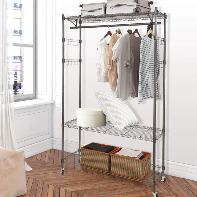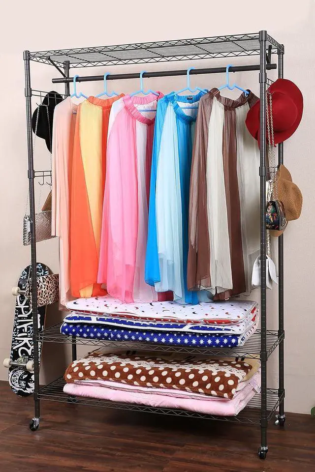 Premium and Safe Clothes Rack: The clothing rack is heavy-duty and can hold up to 800lbs. The wire portable clothing closet is relatively light and can be easily moved after removing the clothes placed on it. Hanging clothes racks for hanging clothes are made of 1inch diameter heavy-duty metal, sturdy metal wire, and Eco-friendly and odorless paint
