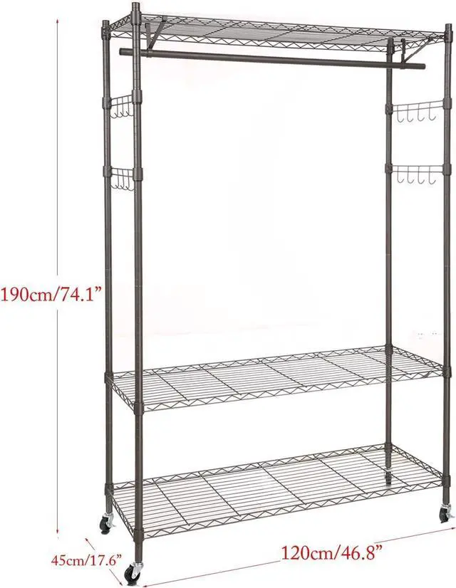 Size & Save Space: The clothes rack dimension is 88.58 " Lx 17.72 " Wx 74.81 " H. Do not worry about the closet racks being too large, room will not fit. The clothes rack is designed with a slip-on locking system that allows the rack to be split into two racks for use
