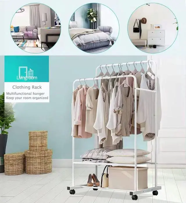 MULTIPLE USES - This clothes garment rack on wheels not only can be placed in the room, but also can be placed on the balcony to dry clothes